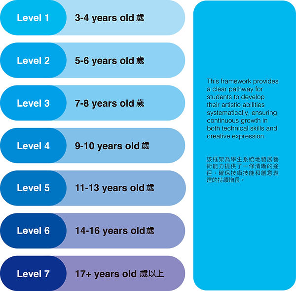 我們的評估系統確保學生能夠循序漸進地學習與發展藝術能力:
